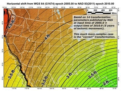 Like Smith, Bock says that more frequent updating would actually complicate matters: "Surveyors do not like it if coordinates change, so this is kind of a compromise." For localized line-drawing, it doesn't much matter, but large-scale projects such as the California high-speed rail system have to keep up with tectonic motion.